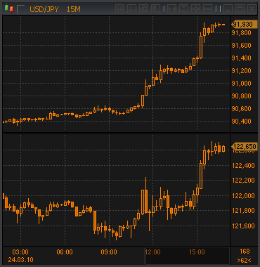| 24.03.10 15:21 | Barclays Capital отмечает усиление восходящего давления в доллар/иене | 24.03.10 17:11 | BNP Paribas позитивно оценивает перспективы доллар/иены |