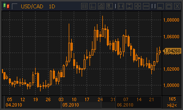 Как отмечают валютные аналитики Brown Brothers Harriman, канадский доллар несет потери против американской валюты четвертую сессию подряд, и этому, безусловно, способствовали опубликованные в среду слабые данные по розничным продажам в Канаде вкупе с мрачными данными по рынку жилья в США и вчерашним несколько пессимистичным заявлением FOMC ФРС. В банке обращают внимание на то, что сейчас направление канадского доллара больше зависит от рисковых настроений, нежели от фундаментальных макроэкономических факторов. Это подтверждает тот факт, что в течение последних трех месяцев корреляция канадской валюты с индексом S&P500 была выше, чем у евро или иены, а также выше, чем с нефтью, золотом или медью. В паре доллар/канада уверенный прорыв выше области сопротивления 1.0433/50, где проходит 200-дневная скользящая средняя и линия тренда от майского максимума, может поставить под угрозу уровень 1.06. На данный момент пара доллар/канада находится на отметке 1.0426. Источник: ProFinance.Ru - Новости рынка Forex