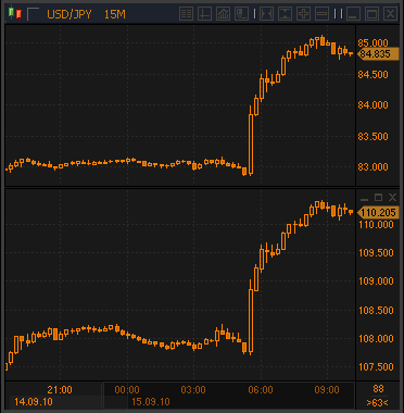 Долгий период вербальных интервенций со стороны официальных японских лиц этой ночью был грубо нарушен Министерством финансов и Банком Японии, продажи иены со стороны которых спровоцировали лавинообразное исполнение стопов, позволившее кроссам иены существенно прибавить в цене. Так доллар/иена, например, оказался выше восемьдесят пятой фигуры, а евро/иена достиг уровней вблизи Y110.40, при этом в настоящее время японская валюта по-прежнему находится вблизи свежих минимумов, продолжая ощущать давление при попытках роста. Дилеры отмечают, что участники рынка опасаются, что Банк Японии, потративший, по слухам, порядка Y100 млрд. (прим. forexpf.ru: ранее сообщалось о Y200 - Y300 млрд.) не остановится на достигнутом, и они советуют обратить внимание на заявление официальных лиц Министерства финансов о том, что интервенция на валютном рынке еще не завершена и является ответом на изменения курсов валют. Источник: ProFinance.Ru - Новости рынка Forex