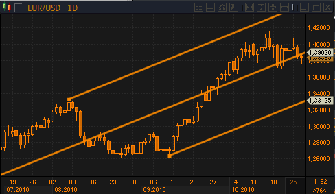 Вокруг евро/доллара как всегда масса разного рода слухов: опционные барьеры, покупки китайских властей, грядущее QE2. Сейчас главная интрига заключается в том, учитывает ли рост евро/доллара на 1200 пунктов все варианты и последствия количественного ослабления, или после объявления решения ФРС нас ждет взлет к новым вершинам? На дневном графике отчетливо видна тенденция к консолидации, которая подтверждает нерешительность инвесторов. С одной стороны, на евро/доллар давит тенденция к закрытию избыточных коротких позиций по доллару, с другой стороны - все та же перспектива девальвации американской валюты под влиянием QE. С технической точки зрения, на дневном графике пара тестирует среднюю линию вил Эндрюса. Закрытие ниже этой линии может сигнализировать о дальнейшем падении к нижней границе вил (текущее значение 1.3312). Источник: ProFinance.Ru - Новости рынка Forex