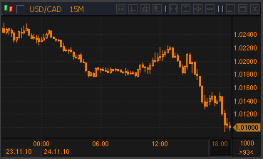 Доллар/канада продолжает активно снижаться