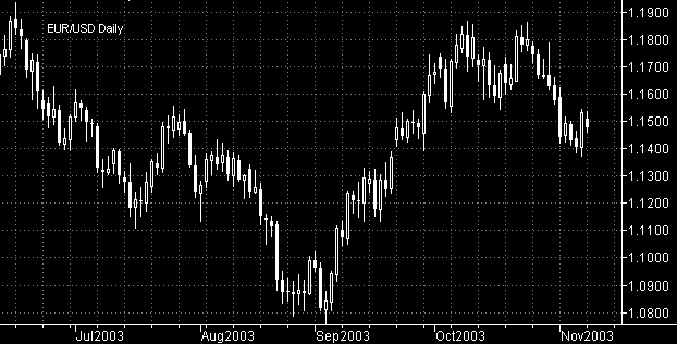 Евро. Бычье поглощение и день разворота. На дневном графике евро мы можем наблюдать модель "бычье поглощение". Она относится к числу важнейших сигналов разворота и образуется двумя свечами с контрастными по цвету телами. На рынке господствует нисходящая тенденция ( внашем случае 11 операционных дней) , затем появляется бычья свеча с белым телом, которая поглощает предшествующую свечу с черным телом. Это свидетельствует о том, что давление покупателей превзошло давление продавцов. Модель поглощения должна удовлетворять трем критериям: 1. На рынке должна быть ярко выражена восходящая или нисходящая тенденция (пусть даже краткосрочная). 2. Модель поглощения образуется двумя свечами. Второе тело должно поглотить первое (тени могут и не поглощаться). 3. Второе тело должно быть контрастным по цвету. (Исключение из этого правила бывает лишь в том случае, когда тело первой свечи в модели поглощения настолько мало, что эта свеча сравнима с дожи (или является дожи). Таким образом, если после продолжительной нисходящей тенденции крохотное белое тело поглощается очень большим белым телом, это может служить сигналом разворота в основании. Потенциал свечной модели "бычье поглощение" в нащем случае усиливается еще и тем, что рынок сформировал т.н. "день разворота", когда цены достигли нового экстремума и закрылись выше уровня закрытия предыдущего дня. Правда "день разворота" всегда требует роста объемов. Усиливающими факторами модели "бычье поглощение" являются: 1. первая свеча модели имеет очень маленькое тело, а вторая ? очень длинное; 2. модель поглощения появляется после затяжной или очень стремительной тенденции. 3. второй свече модели поглощения соответствует большой объем торгов 4. вторая свеча модели поглощает несколько тел.