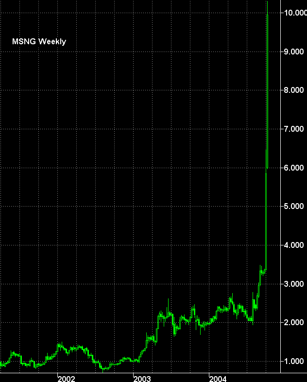 Российский рынок акций достиг нового локального максимума по индексу РТС - 674.53 пункта -благодаря спросу на все голубые фишки, а также беспрецедентному росту акций АО "Мосэнерго". Рост бумаг "Мосэнерго" (РТС: MSNG) вызван ажиотажным спросом на фоне катастрофического дефицита этих бумаг в свободном обращении, чему ранее, по слухам, способствовали планомерные скупки этой фишки "Газпромом". График акций представлен ниже. Внутредневной рост акций на ММВБ превышал 75 %. В11:43 мск ММВБ снова остановила торги акциями АО "Мосэнерго" до распоряжения ФСФР. К настоящему моменту новым историческим максимумом отметились и бумаги "ЛУКОЙЛа" (РТС: LKOH), достигшие на ММВБ отметки 966.40 за акцию. Перспективы этой бумаги, с фундаментальной точки зрения, сильно улучшились после последних известных событий. Также в фаворе у спекулянтов остаются акции РАО "ЕЭС России", растущих в цене на волне последних решений по реформированию холдинга. Техническая картина этой бумаги указывает на сильные бычьи потенциал. Прорыв уровней сопротивления на 9.50 и более сильного на 9.780/9.930 выводит быков на тестирование абсолютных максимумов на 10.648, после которых мы снова можем стать свидетелями совершенно неуправляемого роста.