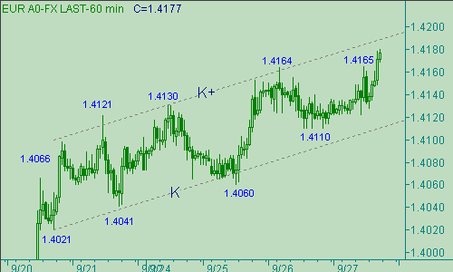 Евро/доллар продолжает свое "бычье" дело, прорываясь сегодня выше уровня 1.4164. Рост локальных донышек, как и вершин, указывает на процесс формирования парой восходящего тренда. Обменный курс неумолимо приближается к фигуре 1.4200, которая находится в целевой области 1.4190/1.4210. Списочный состав потенциальных целей для up-движения пары: 1.4160/75, 1.4190/1.4210, 1.4240/50, 1.43260/70, 1.4290/1.4310, 1.4390/1.4400. Согласны, что интервал, расположенный между фигурами 1.4200 и 1.4300 очень плотно охвачен целевыми областями, но что есть, то есть. Хотелось бы иметь более четкие цели, но увы. На текущий момент имеем следующий расклад: модель down-коррекции курса более не актуальна (состоялся прорыв евро выше 1.4175); продолжается восходящее движение евро/доллара, который приближается к фигуре 1.4200; в ближайшее время для нас первоочередной задачей станет отслеживание формирование или up-прорыва или down-отскока от уровня 1.4200. Понятно, что отскок будет буддировать в нас интерес к down-модели, а прорыв уровня - к модели расширения восходящего движения с началом от 1.3358(16/08/07). Оставляем в качестве важной области поддержки область, расположенную около фигуры 1.4000.