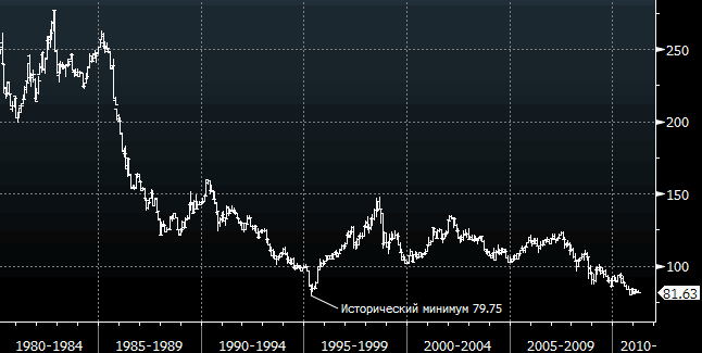 Валютные стратеги Goldman Sachs, комментируя текущую ситуацию в паре доллар/иена, говорят, что "повышенная волатильность и расширенный торговый диапазон с текущими ценами в районе его нижней границы увеличивают вероятность достижения нового рекордного минимума ниже 80.00. Успехи в росте иены в прошлом побудили японские власти принять меры (имеются в виду интервенции Банка Японии в сентябре 2010 года). После землетрясения мы сомневаемся, что японские власти хотели бы в дополнение к разрушениям получить шокирующий удар по экономике со стороны валютного курса. Уже японские власти дали понять, что сделают все, чтобы сохранить стабильность рынков. Хотя до сих пор упор делается на вливания ликвидности в местные денежные рынки, это не исключает угрозы интервенций на международном валютном рынке в случае разрушительного движения в доллар/иене. В сентябре прошлого года Банк Японии начал интервенции, когда курс доллар/иена достиг новых 15-летних максимумов ниже уровня 83.00, Несмотря на предпринятые усилия, исчисляемые триллионами, курс смог упасть до 80.20/25 в ноябре, прежде, чем поднялся до 81.15 в конце года. Уровень в 80 иен за доллар по-прежнему является "красной линией" для Банка Японии". Источник: ProFinance.Ru - Новости рынка Forex