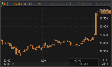 С открытием торгов в Токио курс доллар/иена взлетел к фигуре 81.00. Ослабление иены было вызвано проведенной скоординированными силами некоторых центробанков G7 валютной интервенцией. По результатам экстренного телефонного совещания Большой Семерки был опубликован протокол совещания.