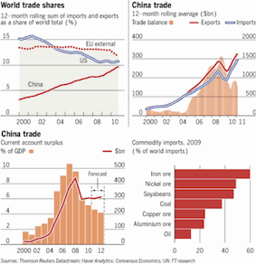 Наиболее актуальной проблемой в контексте платежных балансов Китая и его торговых партнеров остается проблема профицита торгового баланса и текущего счета. К счастью, Китай уже и так осознает, что сложившаяся ситуация ведет к дестабилизации экономики на внутреннем уровне. Чен Демин, министр торговли в Китае, недавно заявил о том, что страна ставит перед собой задачу стабилизировать объем экспорта, увеличитьобъем импорта и сократить профицит. Мало того, он также добавил: "Согласно прогнозам, в текущем году объем импорта будет расти быстрее экспорта. Профицит торгового баланса как доля от ВВП опустится ниже 3.1%" На самом деле, несмотря на то, что размер профицита в Китае по-прежнему способен поразить воображение, по сравнению с докризисными уровнями он снизился почти в два раза. Китай осознает, что накопление долговых ценных бумаг других государств должно сопровождаться аналогичным предложением своих аналогичных инструментов. К сожалению, сейчас китайский спрос на эти инвестиции удовлетворяется через пагубный и вредоносный внешний дефицит в США. Китай может ускорить процесс либерализации оттока капитала и повысить гибкость своей валюты, что несомненно пойдет на пользу экономике страны. Более того, Китаю необходимо разработать стратегию реформирования мировой монетарной системы, которая отвечала бы его интересам в вопросах управления взаимодействием внутреннего роста и мировой стабильности. Желательным шагом в этом направлении будет координация управления валютными механизмами с другими экспортно-ориентированными развивающимися экономиками. Кроме того, Китай заинтересован в том, чтобы обеспечить себе поддержку своих партнеров при обсуждении различных вопросов на заседаниях Большой Двадцатки. Необходимо сделать акцент на дисбалансах. методах корректировки и обеспечения ликвидности для стран, находящихся в затруднительном положении.