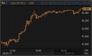 | 30.03.11 02:24 | Между банками Wall Street и хедж-фондами идет война за валютных трейдеров | 30.03.11 06:20 | Курс доллар/иена резко вырос, но офера японских экспортеров мешают продолжению движения |