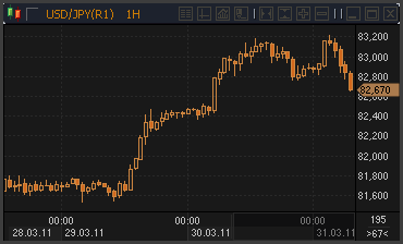 Курс доллар/иена после тестирования максимумов в области 83.20 развернулся и формирует нисходящую динамику. В настоящий момент цены находятся ниже минимумов вчерашней американской торговой сессии. Спрос на иену формируют японские экспортеры, закрывая бухгалтерские книги в последний торговый день финансового года. Краткосрочные спекулянты фиксируют прибыли по длинным позициям в американской валюте, что отражается на темпах нисходящего движения курса доллар/иена. "Надежд на завершение второго этапа количественного ослабления в США недостаточно для того, чтобы удержать пару на уровнях выше 83.50", - говорит Юзо Сакаи, валютный управляющий из Ueda Harlow в Токио.