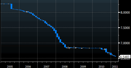 С 2005 года официальный Пекин постепенно ослабляет контроль над своей национальной валютой. Однако ряд стран во главе с США считают, что темпы укрепления юаня недостаточны. Создание искусственной слабости своей национальной валюты дает несправедливое преимущество китайским экспортерам. "Асимметрия в политике обменных курсов создает много проблем. Риск инфляции в странах с развивающейся экономикой и недооцененной валютой усиливается". - отметил в своем выступлении Тимоти Гейтнер.