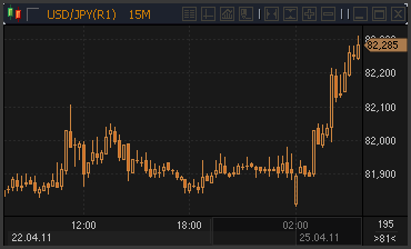 | 24.04.11 23:22 | Европейская долгая дорога слез к фискальному союзу | 25.04.11 07:49 | Валютные стратеги Daiwa ожидают курс доллар/иена через год на 100.00 |