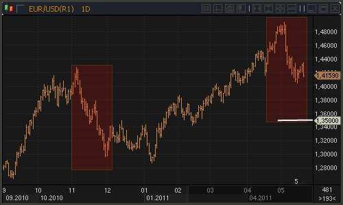 | 22.05.11 00:33 | Динамика евро/доллара дает повод опасаться дальнейшего падения | 23.05.11 03:54 | Снижение в паре евро/франк. Пока не стоит бояться интервенции SNB |