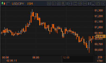 Американская валюта в течение дня падала против иены, но начала восстанавливаться после публикации отчета по безработице США, показатели которого оказались ненамного ниже ожиданий. Непосредственно перед публикацией отчета курс доллара резко снизился с Y80.65 до Y80.55, что стало новым трехнедельным минимумом. Сразу после публикации данных пара доллар/иена начала восходящее движение и уже укрепилась на 30 пунктов. В настоящее время пара доллар/иена держится в области Y80.80. Ближайшее сопротивление расположено на уровне Y81.30, а затем на Y81.55/75 и на Y82.00/20. Ближайшая поддержка находится в области Y80.55/65/70, а затем на Y80.35 и на Y80.00. Текущий курс доллар/иены Y80.84.