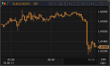 | 16.06.11 05:00 | Citigroup: в ближайшее время евро/доллар может опуститься ниже $1.40 | 16.06.11 11:35 | Доллар/иена. Комментарии дилеров по текущей ситуации |