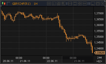 Впервые с 1 апреля курс фунт/доллар ниже 1.60 после того, как отчет по розничным продажам от Конфедерации британских промышленников оказался самым слабым в текущем году, что укрепило представления о том, что Банк Англии не будет в ближайшее время повышать ставки. Доходность 10-летних британских облигаций упала до 8-месячных минимумов, так как инвесторы искали безопасные активы с фиксированной доходности в других частях планеты. В настоящий момент рынок не ожидает от Банка Англии повышения ставки до августа 2012 года. Фунт/доллар упал ниже текущего значения своей 200-дневной скользящей средней линии. Следует отметить, что курс британской валюты по отношению к швейцарскому франку достиг рекордного минимума в области 1.3368. «Хорошая новость по Великобритании может носить лишь временный позитивный характер для фунта. Рынок четко поддерживает активы тех государств, которые занимают активную позицию в вопросе повышения ставок», - говорит Ли МакДэрби, глава торговли облигациями из Investec Bank Plc. Источник: ProFinance.Ru - Новости рынка Forex