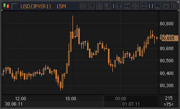 | 01.07.11 03:54 | Индийская рупия достигла 2-недельного максимума против доллара США | 01.07.11 10:51 | Повышение ставок ЕЦБ на следующей неделе – вопрос решенный |