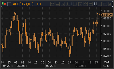| 26.07.11 23:40 | Евро/доллар. Краткосрочные технические перспективы говорят о росте до 1.4580 | 27.07.11 07:00 | Австралийский доллар достиг новых рекордных исторических уровней |