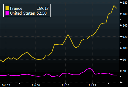 Страховка от дефолта Франции выросла в 2 раза за 6 недель