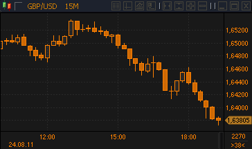 | 24.08.11 18:44 | Доллар/иена продолжает консолидироваться | 24.08.11 23:06 | Фунт/доллар рискует продолжить снижение |