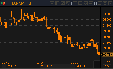 | 24.11.11 18:46 | Евро/доллар. Фундаментальные уровни | 24.11.11 19:25 | JPMorgan понизил прогноз по евро |