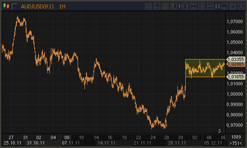 Рынок замер до получения результатов заседания по ставкам Совета управляющих ЕЦБ или до получения какой-либо конкретной информации с саммита европейских лидеров, который начинается сегодня. В рамках азиатской торговой сессии в этой ситуации можно выделить австралийский доллар, который проявит волатильность в ответ на публикуемую сегодня статистику по рынку труда в Австралии за ноябрь. Безусловно, основной фокус рынка направлен в сторону Европы, однако вчера были опубликованы данные по ВВП Австралии за 3 квартал, которые на удивление оказались лучше прогнозов. Пусть и незначительно, но австралийской валюте удалось укрепить свои позиции по итогам торгов в среду. Несомненно, последует реакция и на сегодняшнюю статистику, однако вряд ли удастся покинуть установленный диапазон, до получения новостей из Европы.