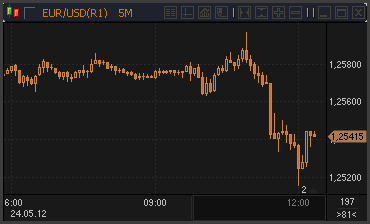 | 24.05.12 11:58 | Фунт снижается к доллару, но растет к евро перед выходом данных по ВВП Великобритании | 24.05.12 13:36 | SNB скупает евро за франк и продает единую валюту по всему спектру рынка |