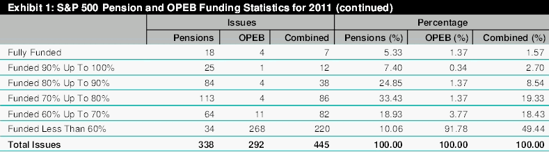 В то время как участники рынка остаются сконцентрированы на последствиях лопнувшего пузыря на рынке долговых обязательств европейских стран, дополнительный поводов для беспокойства относительно стабильности финансовой системы достаточно. Тревожным остается ситуация с пенсионными схемами, в частности в США, где дефицит продолжает нарастать и, согласно исследованию S&P, достиг рекордных $354.7 млрд., тогда как дефицит в рамках OPEB (иные выплаты по выходу на пенсию) достиг $223.4 млрд. - лишь у четырех компаний в этой части наблюдался профицит. Фонды продолжили сокращать инвестиции в акции и наращивать объем вложений в облигации, что с учетом падения доходности дает повод ожидать спада в прибыли и дальнейшего роста дефицита, а в долгосрочной перспективе и меньших потребительских расходов. Источник: ProFinance.Ru - Новости рынка Forex