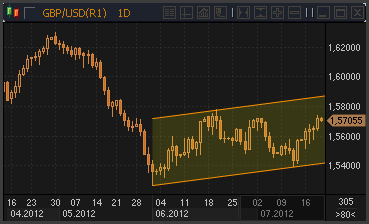 Технические аналитики из United Overseas Bank Джимми и Куек Сер Лиин отмечают в своих комментариях, что индикатор Momentum дневного графика пары фунт/доллар предполагает продолжение восходящего движения курса до июньских максимумов на 1.5778. Также не стоит исключать, что потенциальный рост стерлинга может позволить проверить на прочность верхнюю линию бычьего канала в области 1.5860. Те, кто сохраняет на данный момент длинные позиции в паре фунт/доллар, могут разместить стоп-лосс чуть ниже фигуры 1.5600 и провести частичную фиксацию прибыли по удерживаемым лонгам на 1.5775/80. Полностью покидать длинную позицию не стоит, поскольку к тому моменту фунт может нарастить свою бычью силу, которая может оказаться способной толкнуть курс до 1.5860. Источник: ProFinance.Ru - Новости рынка Forex