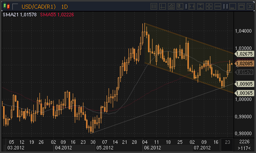 На торгах во вторник канадский доллар достиг минимальной отметки за последние 2 недели по отношению к своему американскому соседу. Причинно-следственная связь остается прежней: ухудшение ситуации вокруг долгового кризиса в Европе демпфирует спрос на рисковые активы, а также оказывает негативное влияние на сырьевые цены, в частности, на нефтяные котировки. Канадский доллар в связи с этим ощущает давление продаж.
