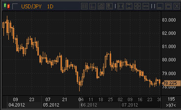 Доллар/иена может возобновить снижение по направлению к пятимесячному минимуму, достигнутому 1 июля, в случае прорыва ниже минимума прошлой недели, считают в UBS. «Даунтренд сохраняет полную силу», - отмечает Ричард Эдкок, технический стратег банка в Лондоне. - «Пара пытается сформировать двойное основание, однако, если она вновь упадет ниже фигуры Y78, где расположен минимум прошлого понедельника, высока вероятность продолжения снижения по направлению к минимуму 1 июля на Y77.65 и дальше».