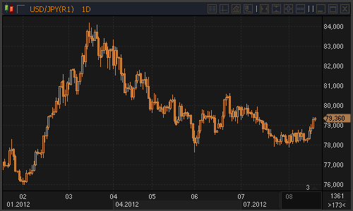 Спрэд доходности между 2-летними облигациями Казначейства США и аналогичными бумагами японского правительства составляет сегодня 19.3 базисных пункта, что является максимальным значением с 4 июля. 5-летним американские облигаций по сравнению с аналогичными бумагами Японии предлагают премию в 57 базисных пунктов. Минимальное значение в рамках текущего года составляло 36 базисных пунктов. «Дифференциал процентных ставок является ключевым фактором движений в паре доллар/иена. Американская экономика стала выглядеть несколько лучше, особенно в части жилищного сектора. Это стимулирует увеличение давления на иену», - комментирует ситуацию Эндрю Солтер, валютный стратег из Australia & New Zealand Banking Group в Сиднее. Масафуми Ямамото, глава валютной стратегии из Barclays Plc в Токио, прогнозирует, что курс доллар/иена в течение последующих 3 месяцев может вырасти до 85.00. Его ожидания основаны на том, что замедление американской экономики уже достигло наихудшей точки во втором квартале текущего года и теперь она будет заряжена позитивным импульсом, который наиболее четко раскроется в 4 квартале текущего года. Источник: ProFinance.Ru - Новости рынка Forex
