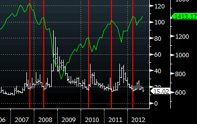 Серьезное снижение Индекса волатильности VIX, имевшее место в августе, может оказаться зловещим знаком считает ряд buy- и sell-side аналитиков. «Вероятно, наиболее значимым событием прошлой недели для американского рынка акций стало пятничное закрытие индекса на отметке 13.45, минимальной с 2007 года», - говорит Дэвид Розенберг, главный экономист Gluskin Sheff в Торонто. - «Это в совокупности с ростом бычьих настроений на рынке наглядно демонстрирует опасное самодовольство инвесторов». С данной точкой зрения согласна Мэри Энн Бартелз, технический аналитик BofA-ML. «В прошлом, достижение индексом VIX области 14-16 совпадало со среднесрочными пиками на рынке акций. Например, это произошло в октябре 2007, мае 2008, и апреле 2010, 2011 и 2012 годов. Если речь Бена Бернанке в Джексон Хол разочарует инвесторов, рынок может серьезно скорректироваться в сентябре», - пишет госпожа Бартелз в письме клиентам.