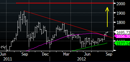 Capital Economics: к концу года золото вырастет до $2000, независимо от запуска QE3