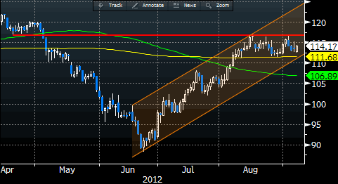 Настрой на рынке нефти остается позитивным, но, в то время как покупки на спадах остаются популярной стратегией, отсутствие прогресса в восходящем движении в ближайшие дни может привести к заметному росту рисков коррекции ниже. Восходящий импульс ослаб, а попытки сломить сопротивление в районе $116.70/00 остаются неудачными. Вместе с тем, нефть остается в рамках бычьего канала с конца июня, а также сумела закрепиться выше 200-дневной скользящей средней. Текущая консолидация в свете восходящего тренда последних недель сохраняет конструктивный характер, однако для подтверждения позитивного сценария развития событий «черному золоту» крайне необходим прорыв верхней границы диапазона, который позволит рассчитывать на дальнейший рост к $120 за баррель. В отсутствие такового краткосрочным спекулянтом остается придерживаться диапазонной торговли, при этом потеря опоры в районе $111.71/50 будет сигналом о формировании вершины и возможности коррекции к $110, а затем к $108 и, потенциально, к $106.89 за баррель. Дмитрий Храбров Источник: ProFinance.Ru - Новости рынка Forex
