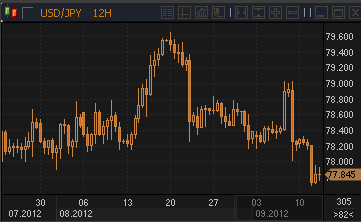 На сегодняшней пресс-конференции в Токио министр финансов Японии Юн Азуми назвал вчерашнее снижение доллара/иены спекулятивным и подтвердил готовность действовать в целях прекращения дальнейшего укрепления национальной валюты. «Движения, подобные вчерашнему, являются недопустимыми, и мы определенно примем решительные меры в случае необходимости», - ответил господин Азуми на вопрос о своем отношении к тому, что пара торгуется ниже отметки Y78. Отметим, что с середины марта доллар подешевел против иены уже на 7%, а запуск QE3 в США может еще более усилить данный тренд. Источник: ProFinance.Ru - Новости рынка Forex