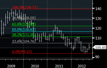Евро/иена может достичь очередного 4-месячного максимума, если сумеет удержаться выше ключевой поддержки, считают в Commerzbank. «Возможно, в ближайшее время пара еще несколько подешевеет, однако в случае закрепления выше поддержки Y99.55 сохранятся высокие шансы на рост в область Y104.59/104.81», - пишут технические аналитики банка в Лондоне. - «Эта цель представляет собой 2 уровня коррекции: 23.6% от снижения с максимума 2009 года до минимума 2012 года, а также 61.8% от снижения с максимума до минимума текущего года».Отметим, что сегодня пара подешевела пятый раз подряд, что стало наиболее продолжительным периодом снижения с мая. Источник: ProFinance.Ru - Новости рынка Forex