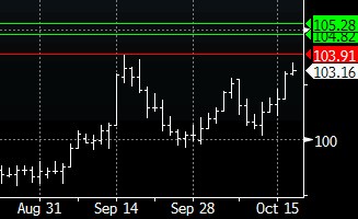 После недавнего ралли евро/иена уперлась в сопротивление Y103.91, представляющее собой сентябрьский максимум и для дальнейшего развития аптренда паре необходимо прорваться выше, считают в UBS. «Любое снижение, вероятно, окажется непродолжительным и неглубоким, поэтому инвесторам следует рассматривать его в качестве возможности для наращивания длинных позиций с целями Y104.82 и Y105.28. Ближайшие серьезные поддержки расположены на Y101.81, Y101.04 и Y100.16», - пишут технические аналитики банка. Источник: ProFinance.Ru - Новости рынка Forex