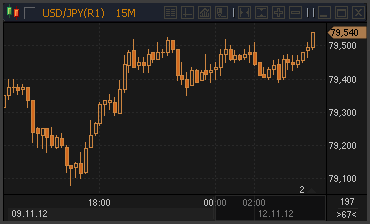 Что касается уже опубликованной статистики, то она носила разочаровывающий характер для иены. Экономический рост Японии в 3 квартале 2012 года сократился на 3.5% в годовом исчислении. Фактический результат на 0.1% оказался хуже прогнозных оценок. С момента последнего разрушительного землетрясения это самое большое сокращение ВВП. Однако сильной реакции иены на данный факт не было замечено. Участники рынка настраивались на плохие цифры, поэтому подобный результат во многом уже заложен в цены.