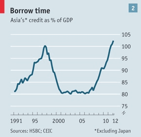 Великое успокоение в Азии также сопровождается резким ростом кредитования - весьма тревожный факт. По словам Фрэда Ньюманна из HSBC, сейчас кредитное плечо в Азии выше, чем когда бы то ни было со времен азиатского финансового кризиса (см. график). Такой рост кредитования может быть следствием здорового "расширения и развития финансовой системы", в котором многие экономисты видят причину роста и стабильности. Но при этом растущая зависимость от заемных средств сама по себе является угрозой для стабильности. Хайман Мински среди прочих утверждал, что падение волатильности позволяет компаниям и домохозяйствам занимать большую часть инвестируемых ими денег. Стабильность в формуле Мински в конечном счете ведет к дестабилизации. Для возникновения чрезмерной увлеченности кредитными средствами как источником финансирования для инвестиций не нужен бесконечный оптимизм, достаточно доступности кредитов; не требуется быстрый рост, главное, чтобы он был стабильным. К счастью, азиатские политики никогда не разделяли веры своих западных коллег в саморегулирующую природу финансовой системы. Именно в этом регионе зародилось "макропруденциальное" регулирование, призванное сдержать чрезмерный рост кредитования и поток в капитала, без повышения процентной ставки. Например, в марте Индонезия ужесточила коэффициенты займ-стоимость по ипотекам и ввела минимальный размер первого взноса по автокредитам. Однако г-н Ньюманн не верит в то, что нормативное ужесточение способно заменить монетарное. По его словам, макропруденциальные инструменты контроля и надзора далеко небезупречны. Деньги будут утекать до тех пор, пока капитал стоит дешево. Если регулирующие органы, например, понизят коэффициент заем-стоимость, банки могут просто поднять оценочную стоимость дома. Если они введут ограничения на покупку недвижимости для нерезидентов (именно так недавно поступили в Гонконге), иностранцы начнут искать лазейки, чтобы обойти это правило. Возможность повышать ставки для Гонкогна ограничивается жесткой привязкой валюты к американскому доллару - это одна из немногих привязок, переживших азиатский финансовый кризис. У других Центробанков нет такого ограничения. Гибкость валютных курсов позволяет им снижать ставки при замедлении темпов роста, и повышать - если экономике грозят финансовые излишества - несмотря на то, что в Америке, Японии и Европе процентные ставки остаются на нуле. Стабильный рост, позволяющий заемщикам и кредиторам выходить за пределы разумного, сеет семена самоуничтожения, считает Ньюманн. И ничего "великого" в этом нет.