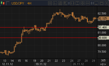 By Gerry Davies || November 29, 2012 at 07:57 GMT Doesn’t seem to be strong conviction which direction next 50 pips will come. Not overly surprising given the whipsaw price action seen yesterday. We’re at 1.2952. Buy orders clustered 1.2900/10 and 1.2880/90, sell stops below there. Buy stops through 1.2970, sell orders clustered 1.2980/00 before more stops through 1.3005. If you put a gun to my head (and Pete’s) we’d have to go with next 50 pips coming to the topside. 12:00 собеседник: Pobeda (11:59), Уже пошли ...посмотришь