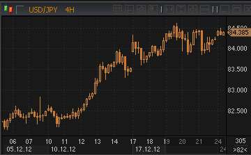 На ранних предпраздничных торгах в понедельник иена дешевеет против большинства основных валют после заявления японского премьера Шинзо Абе о том, что он подумает о внесении изменений в закон, регулирующий деятельность Банка Японии, если в следующем месяце последний не повысит инфляционную цель до 2%. Доллар/иена продолжает торговаться в области 20-месячных максимумов, несмотря на сокращение спекулянтами объема коротких позиций по японской валюте, а евро/доллар остается в подавленном настроении в ожидании падения США с «фискального обрыва». «Думаю, что со временем иена серьезно подешевеет», - отмечает Тодд Элмер, глава валютной стратегии G10 Citigroup в Сингапуре. - «Что касается среднесрочной перспективы, то мы ожидаем уверенного роста доллара/иены в область Y85-90, если не выше». Источник: ProFinance.Ru - Новости рынка Forex