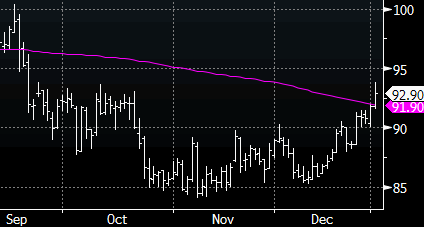 На торгах в среду котировки нефти обоих сортов выросли до трехмесячных максимумов после достижения определенного компромисса в вашингтонских бюджетных переговорах накануне. «Конструктивные действия Конгресса повысили оптимизм инвесторов относительно дальнейших перспектив американской экономики, что нашло отражение во взлете цен на нефть», - говорит Майкл Линч, президент Strategic Energy & Economic Research. - «Повышение налогов в США не затронет большую часть налогоплательщиков, и это — важно». Отметим, что WTI сегодня имеет все шансы закрыться выше 200-дневной МА впервые с 17 сентября. Объем торгов на 16% превышает средний показатель за предыдущие 100 сессий. Источник: ProFinance.Ru - Новости рынка Forex