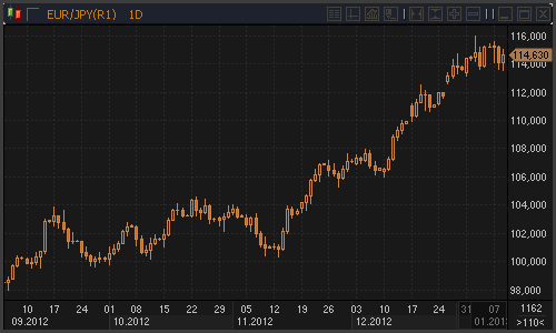 Курс евро по отношению к иене вполне может вернуться к максимальным уровням почти за 21 месяц, считают технические аналитики из Credit Suisse Group. Сейчас единая валюта, после достижения 12-летнего минимума в июле прошлого года, находится в восходящем тренде и переживает коррекционную стадию, после которой она должна вернуться к 116.02, говорит Силин Бейн, лондонский технический аналитик Credit Suisse. При этом пробитие вышеназванного максимума, по мнению эксперта, должно привести к тестированию отметки 121.94 – самого высокого уровня евро/иена с апреля 2011 года. На нижней стороне Бейн отмечает ключевую поддержку на уровне 113.50. Если все же она будет пробита, то за этим последует снижение до 111.45. Примечательно, что согласно официальному прогнозу, который Credit Suisse предоставил агентству Bloomberg в рамках проводимого опроса, банк на конец года имеет прогноз в паре евро/иена на уровне 100 иен за единицу европейской валюты. Источник: ProFinance.Ru - Новости рынка Forex