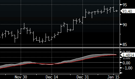 На торгах в среду нефть сорта WTI продолжает торговаться в диапазоне последних двух недель $93-94, отказываясь снижаться, несмотря на рост запасов в США и понижение Всемирным банком прогноза по темпам роста мировой экономики в текущем году. Напомним, что, по данным API, запасы нефти в Кушинге выросли шестой раз подряд и достигли исторического максимума, и сегодняшние цифры от Министерства энергетики США, по прогнозам, также продемонстрируют рост запасов. «США не испытывают абсолютно никакого дефицита предложения черного золота, благодаря собственной добыче», - отмечает Кристофер Белью, старший брокер Jefferies Bache. Отметим, что техническая картина в WTI перестала быть бычьей, а дельта между MACD и сигнальной линией сузилась до минимального значения за последний месяц. Их пересечение станет серьезным медвежьим сигналом. Источник: ProFinance.Ru - Новости рынка Forex