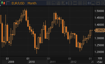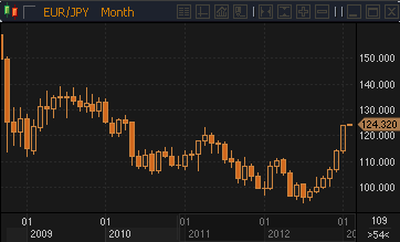 Евро закрыл ростом против доллара и иены шестой месяц подряд, оформив наиболее продолжительный аптренд за прошедшее десятилетие на волне роста оптимизма и надежд на то, что наихудший период европейского долгового кризиса остался позади. «Постепенное закрытие коротких позиций по евро, открытых в прошлом году в расчете на распад Еврозоны, находит отражение на графиках», - отмечает Дэн Дорроу, глава валютных исследований Faros Trading. - «В настоящий момент это является главным драйвером роста единой валюты». Отметим, что в текущем году евро стал наиболее сильной из валют G-10 (+2.7%), а главным аутсайдером остается иена, продолжающая даунтренд последних месяцев (-6%). Впрочем, с технической точки зрения, евро довольно сильно перекуплен и против доллара, и против иены: 14-дневный RSI в обеих парах поднялся выше отметки 70, сигнализируя о том, что в любой момент может начаться коррекция/консолидация. Источник: ProFinance.Ru - Новости рынка Forex