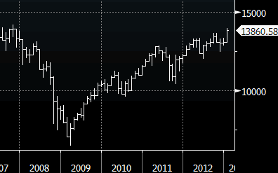Торги в четверг на американских фондовых площадках завершились незначительным снижением основных индикаторов, несколько сократившим январские достижения Dow Industrial, который все-таки оформил лучший месяц с 1994 года, несмотря на публикацию в США слабых данных по рынку труда. «Рынку давно пора передохнуть, поэтому в отсутствие чрезвычайно хороших или крайне плохих новостей, которые в последние годы традиционно приводили к его росту, инвесторы фиксируют прибыль», - отмечает Эрик Грин, глава исследований рынка акций Penn Capital. - «В пятницу все внимание инвесторов будет обращено на данные по рынку труда в США, где, по прогнозам, частный сектор создал в январе 165 000 рабочих мест, а уровень безработицы остался на уровне 7.8%». Отметим, что с начала года S&P 500 вырос на 5.1%, а Dow Industrial - на 5.8%, что стало для них лучшим январем с 1997 и 1994 годов, соответственно. Источник: ProFinance.Ru - Новости рынка Forex