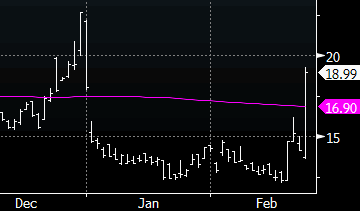 Индекс волатильности CBOE VIX завершил торговую сессию понедельника у верхней границы внутридневного диапазона 13.57-19.28 мощным ростом до 18.99. Благодаря резкому снижению мировых фондовых индексов, VIX сумел закрыться выше 200-дневной МА впервые с 31 декабря и выйти из многонедельного диапазона 12.08-16.21. Источник: ProFinance.Ru - Новости рынка Forex