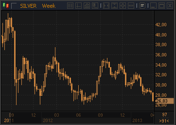 Серебру так и не удалось извлечь пользу из стабилизации, и после несколько затянувшийся консолидации в довольно узком диапазоне, металл продолжил падать. Попытки роста продолжают привлекать хороший интерес к продаже, и под прицелом остаются уровни в области $26.20/00. Первоначальные попытки пробиться ниже могут оказаться неудачными и дать повод для фиксации прибыли спекулянтами, однако неблагоприятный характер технической картины, менее позитивные фундаментальные факторы и позиционирование инвесторов дают повод говорить о росте рисков более масштабного нисходящего движения. Прорыв ниже $26 будет сигналом об их материализации и откроет дорогу в направлении $21/$20 за тройскую унцию. Между тем, динамика золота также оставляет желать лучшего: металл приближается к ключевой поддержке, потеря которой грозит серьезно усугубить положение быков. Дмитрий Храбров Источник: ProFinance.Ru - Новости рынка Forex