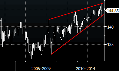BofA-ML повышает прогноз по доллар/иене, обосновывая свое решение технической картиной, сложившейся на рынке 10-летних японских бондов. «Фьючерсы на долговые бумаги японского правительства сформировали опасную фигуру, грозящую серьезным снижением их цены», - отмечает МакНейл Карри, технический стратег банка. – «Котировки JGB завершают формирование пятилетнего восходящего треугольника, что обычно является предвестником начала медвежьего тренда. Данное событие способно резко ослабить японскую валюту и отправить доллар/иену в область Y124». Напомним, что сегодня целый ряд крупных банков, таких как Citigroup и Nomura, уже повысил свои прогнозы по данной паре. С начала года иена подешевела против доллара на 12%. Источник: ProFinance.Ru - Новости рынка Forex