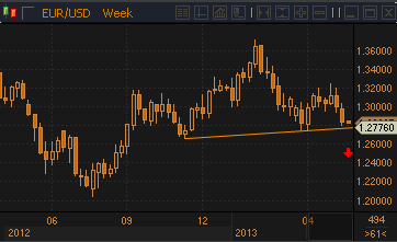 Несмотря на то, что в текущий момент основное внимание инвесторов приковано к иене, динамика евро/доллара также вызывает интерес. Пара находится в опасной близости от многонедельной поддержки и, по словам дилеров, чуть ниже отметки $1.28 наблюдается спрос на единую валюту со стороны суверенных имен. Довольно крупные биды отмечены и в области $1.2790-$1.2770, а также вокруг опционного барьера $1.2750. Офера расположены на $1.2850/60 и $1.2890, а довольно незначительные стоп-ордера на покупку выставлены выше $1.2900. Источник: ProFinance.Ru - Новости рынка Forex